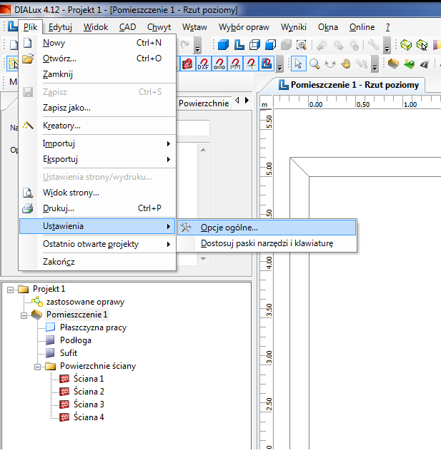 Następnie przystępujemy do konfiguracji programu. Klikamy kolejno: Plik -> Ustawienia -> Opcje ogólne i rozpoczynamy konfigurowanie ustawień.