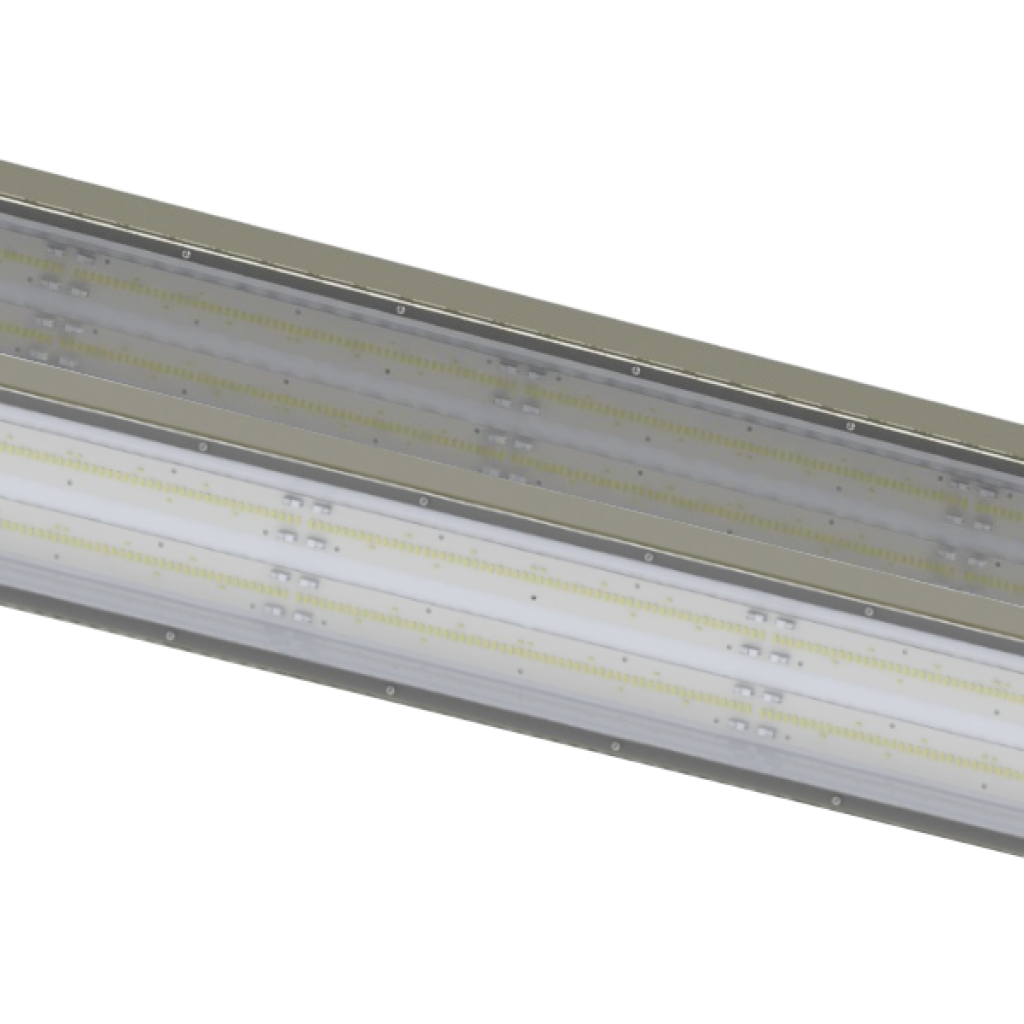Oprawa z sterowaniem 1-10V ze stali Inox, kąt rozsyłu 120°, transparentna przesłona, IK09, IP54, okablowanie nieprzelotowe, montaż do-stropowy, Ra >90, barwa światła 5000K, obudowa biała, długość 1270mm